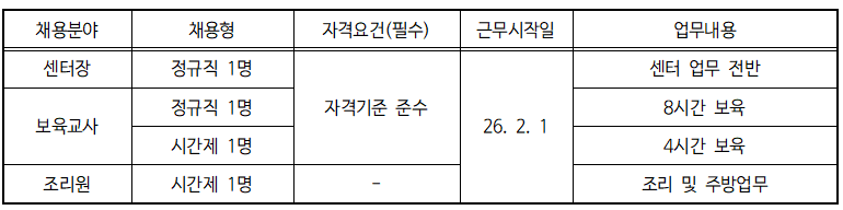 다살림복지회-다함께 돌봄센터 직원 구인(센터장, 보육교사, 조리원)